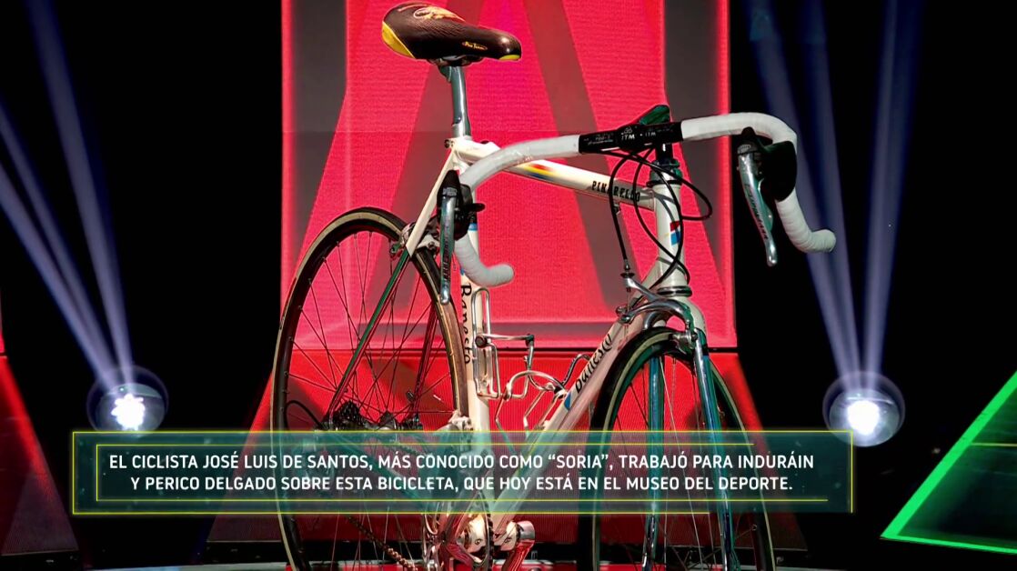 El ciclista José Luis de Santos, más conocido como 'Soria', trabajó para Induráin y Perico Delgado sobre esta bicicleta, que actualmente está en el Museo del Deporte de Madrid. Una bici histórica que compite contra el balón original del partido donde España logro el milagroso 12-1 contra Malta.