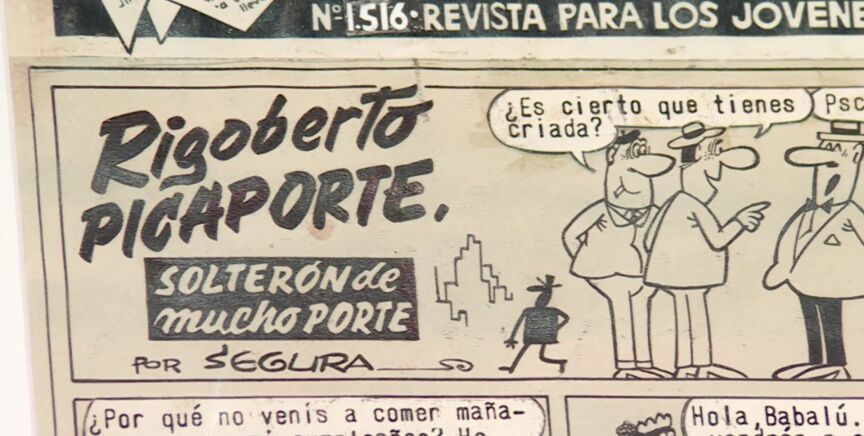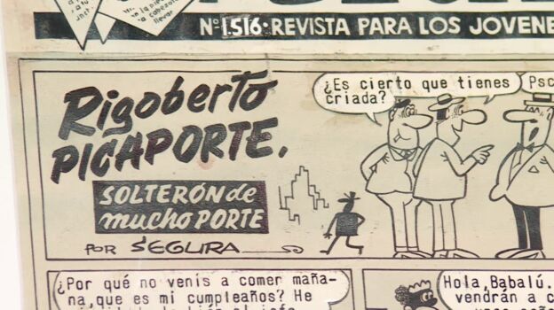 "Lo pintó Roberto Segura, que es el dibujante de Rigoberto Picaporte, todo de su puño y letra, 100 % original", vuelve a insistir. "Rigoberto Picaporte, solterón de mucho porte", lo reconoce instantáneamente Iñaki López. "Estamos hablando de un clásico del cómic español" que además viene directamente del Museo del Cómic y la Ilustración de Barcelona.