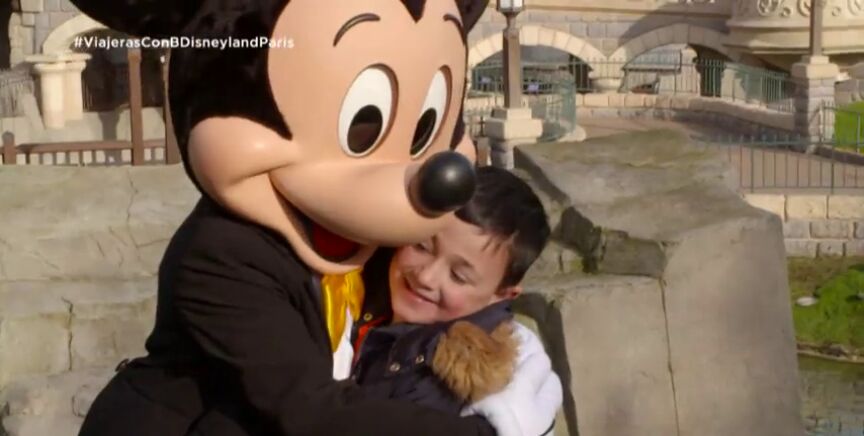 En el parque temático se encuentran con Mickey Mouse, una sorpresa que deja alucinados a los pequeños, que reaccionan con asombro cuando conocen a uno de sus personajes favoritos.