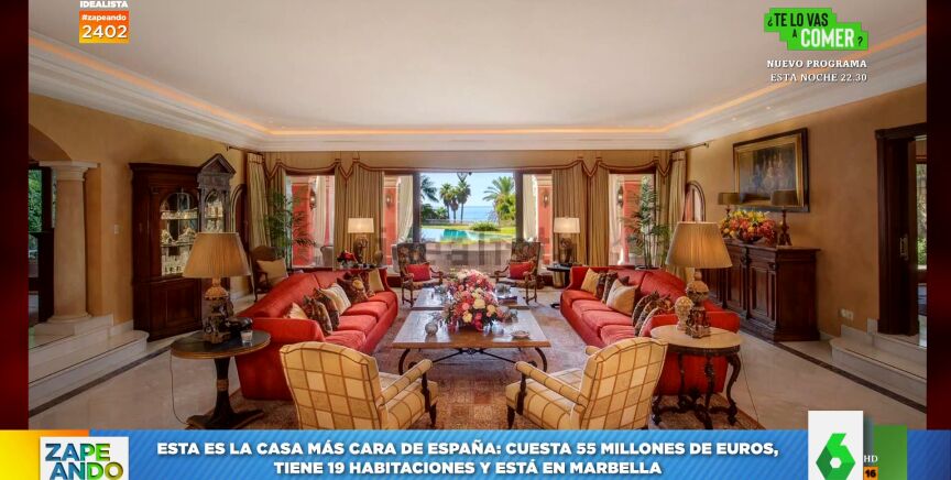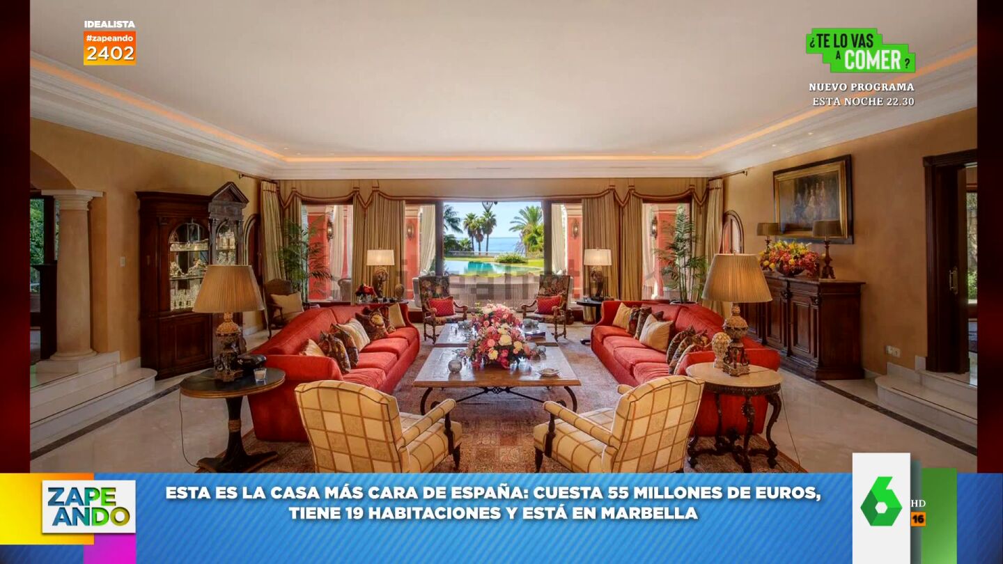 "Tenemos nueva casa más cara en España", informa Dani Mateo a sus compañeros de Zapeando, a los que explica que se encuentra en Marbella y se vende por unos 55 millones de euros. Se encuentra ubicada en una urbanización de lujo donde también están las "mayores mansiones de nuestro país", explica Gakian, que trae imágenes de cómo es por dentro.