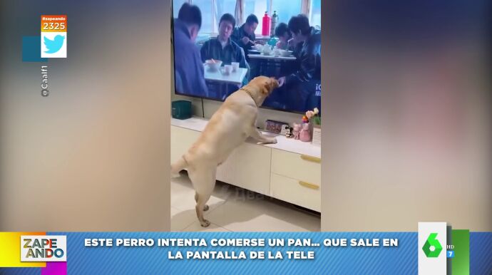 Miki Nadal muestra un nuevo vídeo viralen Zapeando que demuestra lo inocente que son los perros, y si no que se lo digan al protagonista de esta noticia. En él se puede ver cómo un can está sentado frente a la tele cuando, de repente, se cree que le están ofreciendo un trozo de pan.
