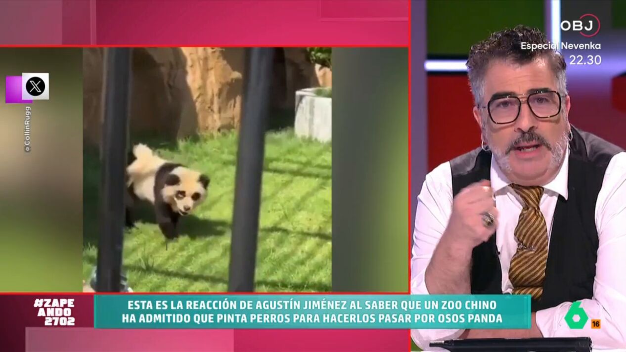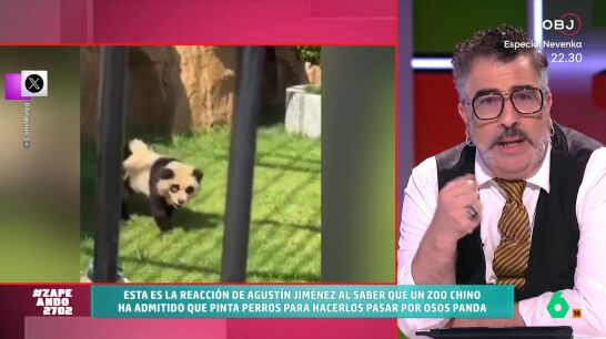 Agustín Jiménez vuelve una semana más a Zapeando para analizar las noticias más insólitas que ocurren por el mundo. En el vídeo sobre estas líneas, reacciona al comunicado de un zoo chino en el que admite que habían pintado a unos perros chow chow para que se parecieran a osos panda.