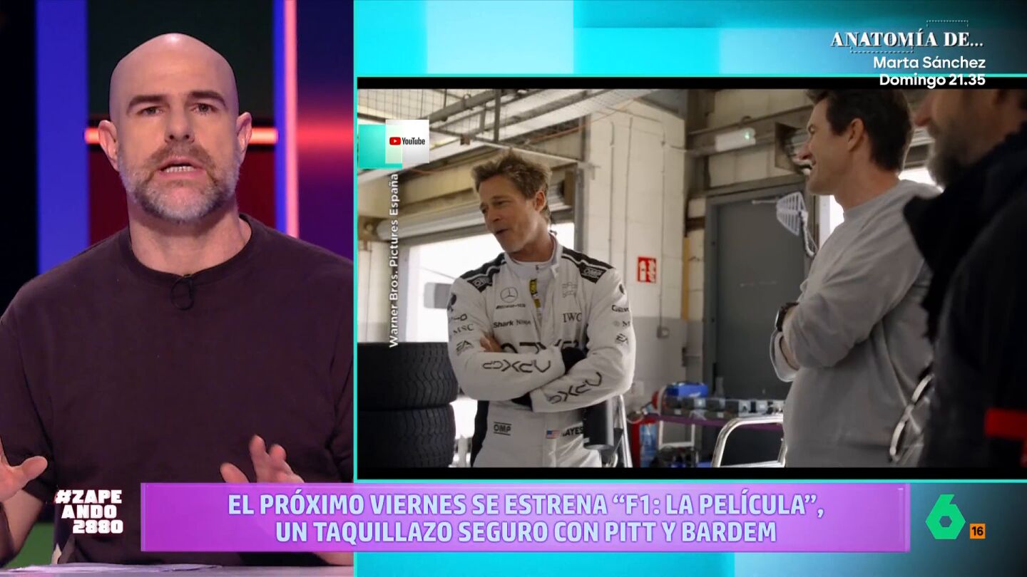 El experto en cine Alberto Rey visita el plató de Zapeando paras hablar de la nueva película de Brad Pitt, 'F1: la película', que se estrena el próximo viernes en cines. Entre las curiosidades que destaca es lo que ha costado producirla: "Unos 250 millones de dólares, por lo que, para ser rentable, deberá recaudar entre 500 y 1.000 millones", asegura el cinéfilo.