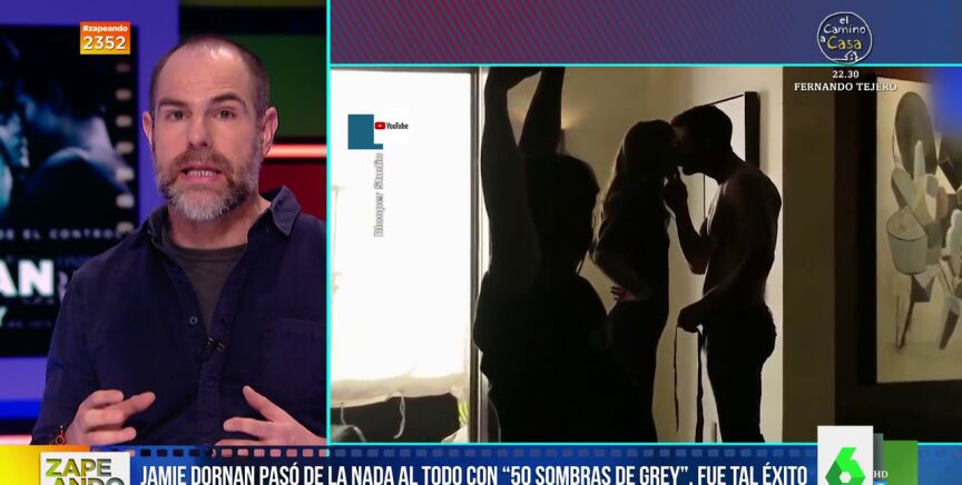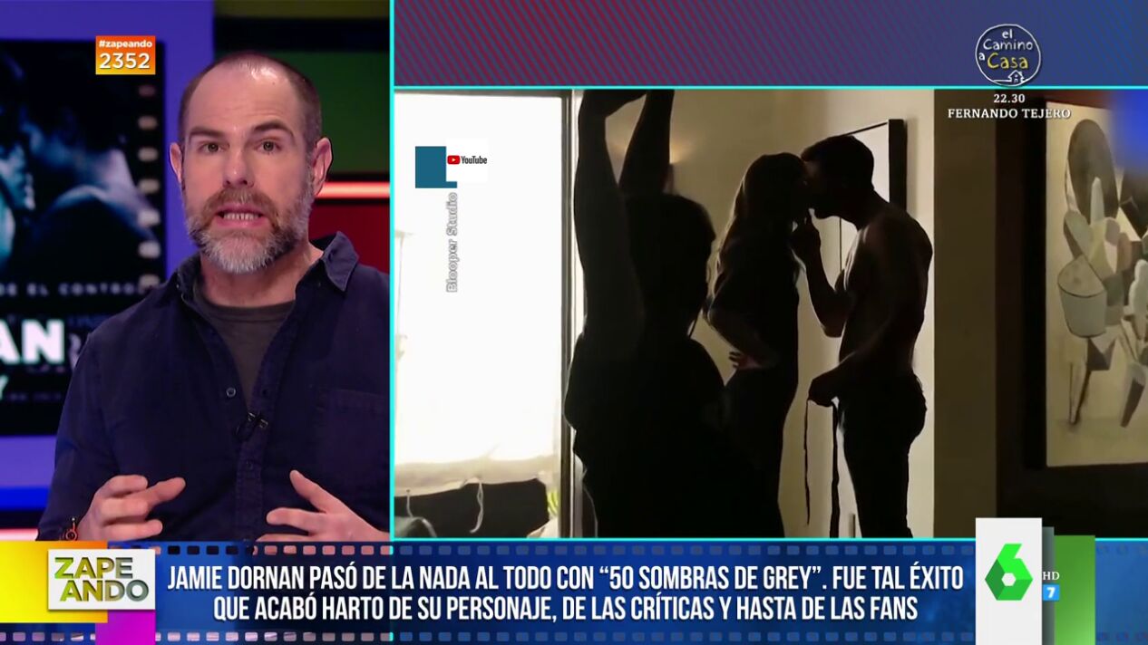 Alberto Reyvisita Zapeando para habalr de películas odiadas por sus protagonistas, como es el caso de Jamie Dornan y '50 sombras de Grey': "Odia la peli que le dio la fama". El actor se ha quejado en varias entrevistas de su personaje, Christian Grey, al que describe como "nefasto, irreal y un poco psicópata". "Pero reniega de él tras cobrar las películas", comenta el experto en cine, que informa a los zapeadores que la trilogía llegó a ingresar "casi 1.000 millones de dólares".