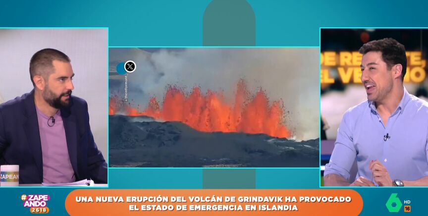 La imagen más espectacular del día nos lleva hasta Islandia ya que el volcán más activo de Islandia vuelve a entrar en erupción. Como explica Berta Collado, "vuelve a poner en vilo al país ya que está a solo 40 kilómetros de la capital, Reikiavik". La zapeadora añade que fue noticia en diciembre pero, desde entonces, ha tenido cinco erupciones más.