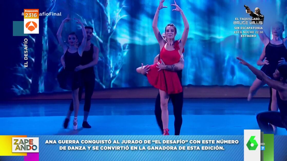 Ana Guerra se ha convertido en la ganadora de esta tercera temporada de El Desafío con un baile en el que mezcló la música de Tchaikovsky con Dua Lipa. Puedes ver el espectacular resultado en este vídeo de Zapeando.