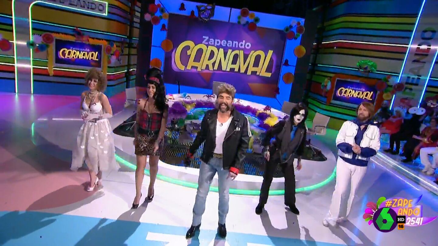 El programa comienza su especial de carnaval con los zapeadores enfundados con los disfraces más originales. Descubre qué leyendas de la música han escogido Ares Teixidó, Valeria Ros, Dani Mateo, Iñaki Urrutia y Berta Collado.