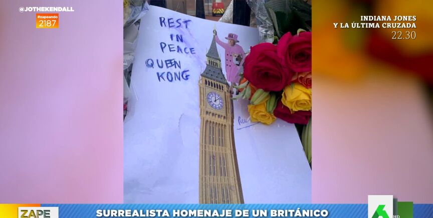 Y, es que, uno de los seguidores de la monarca le ha dejado un cartel a modo de homenaje en el que puede leerse: "Descanse en paz, Queen Kong". "En él se ve a Isabel II subida al Big Ben, como si fuera King Kong", detalla la presentadora en funciones, que asegura que, a pesar de ser "surrealista", es una "original muestra de afecto y un detalle muy 'mono'". Puedes ver el singular dibujo en el vídeo principal de la noticia.