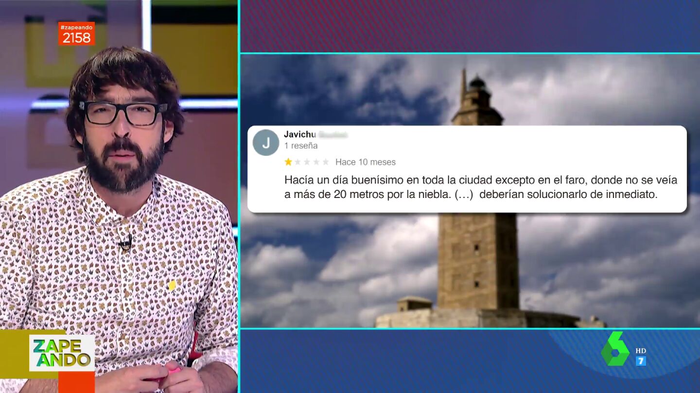 Hay gente que le gusta criticar y luego están "los verdaderos críticos, los tiquismiquis" que, según Lorena Castell, "son aquellos que se paran a juzgar cada pequeño detalle y no paran de buscar la perfección ni siquiera en vacaciones". Como es el caso de Javichu, cuya reseña sobre el faro de Hércules de A Coruña se ha vuelto viral. Y, es que, a pesar de ser un faro romano del siglo I, no acaba de convencerle porque "hacía un día buenísimo en toda la ciudad excepto en el faro, donde no se veía a más de 20 metros por la niebla" y pide que "lo solucionen de inmediato".