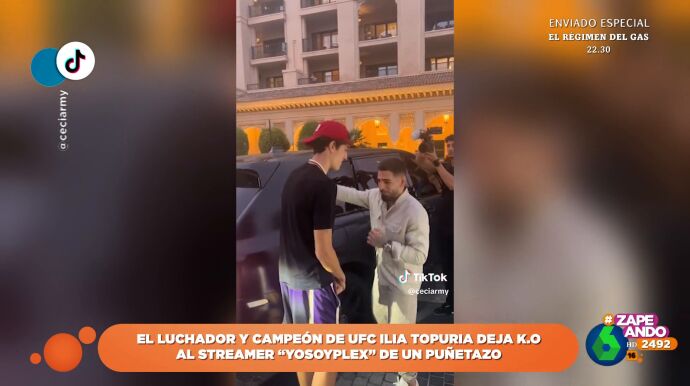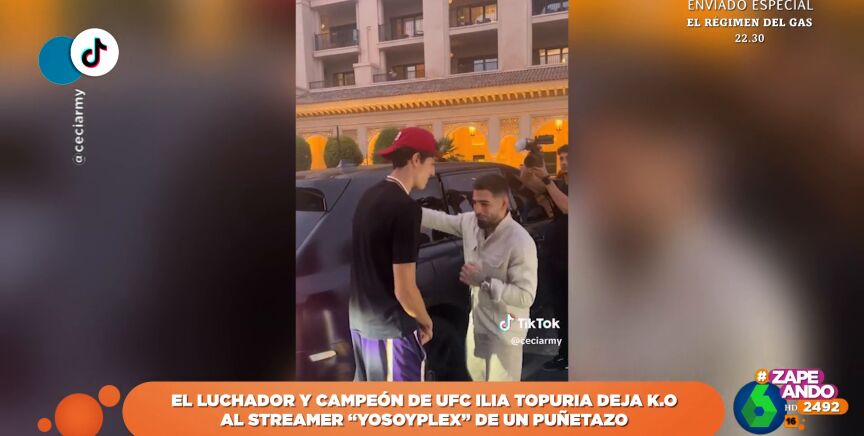 ¿Qué harías si te encontraras con un luchador de la UFC? El 'streamer' Yosoyplex le pidió a Ilia Topuria al verle que le pegara un puñetazo en la tripa y, a pesar de los consejos de sus amigos de mantener tensa la zona, sus esfuerzos no sirvieron de mucho.