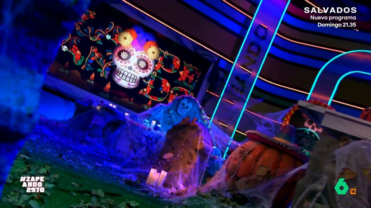 Es la víspera de Halloween y Dani Mateo y los colaboradores de Zapeando lo saben. El plató se ha llenado de disfraces, calabazas y demás adornos y atrezzo para celebrar el día más "terrorífico" del año o la noche más auténtica del año, y es que ya se sabe que, las fiestas hay que celebrarlas siempre por todo lo alto.