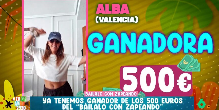 El divertido sorteo de Zapeando ya tiene una nueva ganadora: Alba. La espectadora, que ha enviado su vídeo desde Valencia, se ha llevado el suculento premio después de animarse a mandar un vídeo bailando la canción de Tommy Cash.