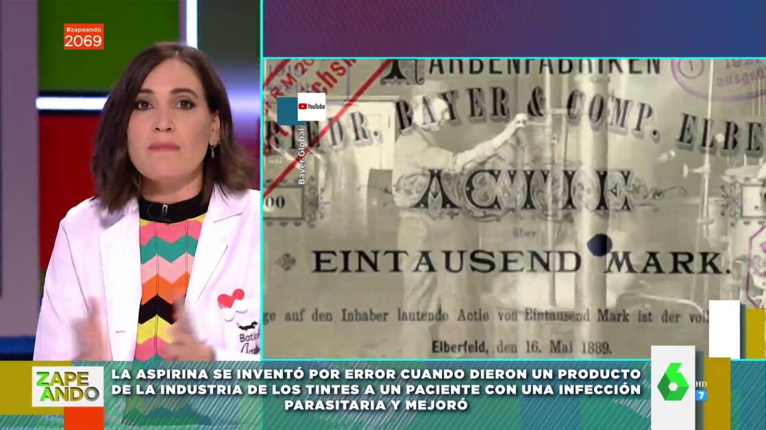Tal y como ha explicado en Zapeando Boticaria García, la aspirina se creó por error: "A un paciente que tenía una infección le dieron un producto que se empleaba en la industria de los tintes por error. Los médicos se confundieron. Casualmente era de Bayer, que era una compañía dedicada a la industria de los tintes. Lejos de ponerse malísimo, mejoró. Experimentaron y encontraron que la clave era un producto de deshecho en la fabricación del tinte", ha indicado la experta. Puedes escucharlo en el vídeo principal de esta noticia.