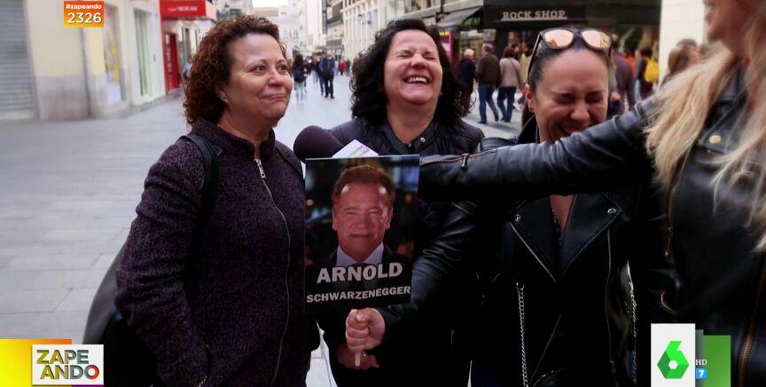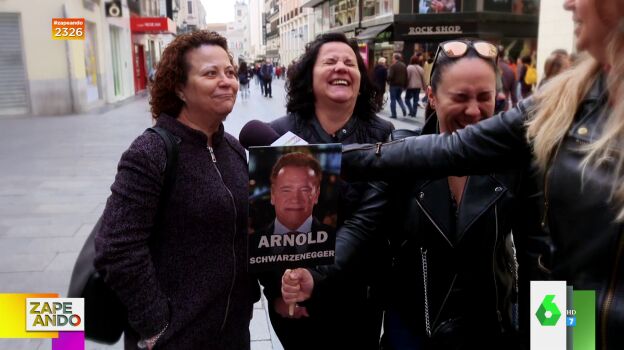Tres amigas no pueden contener la risa al escuchar a una de ellas pronunciar el nombre de Arnold Schwarzenegger: "Sosenaguer". Puedes ver el ataque de risa que les da en plena calle en este vídeo de Zapeando.