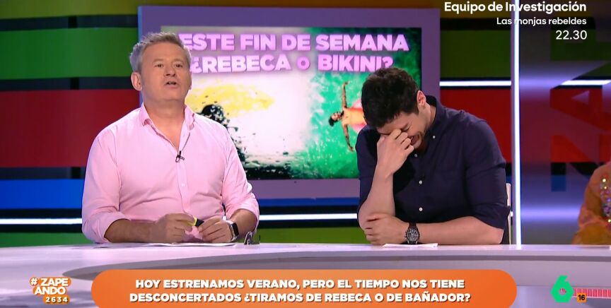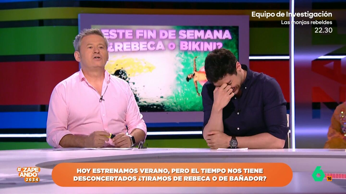 "¿Ohio es colorado o no?", pregunta el de Zaragoza al catalán, que no duda en responder: "Depende del día". "Ese ha sido bastante bueno", reacciona el hombre del tiempo entre risas.