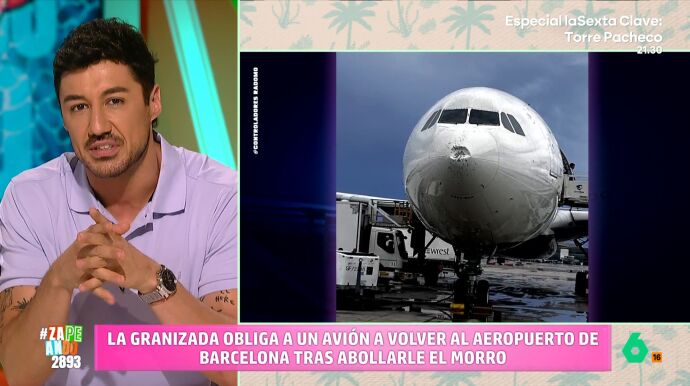 Otra de las consecuencias del temporal fueron las granizadas. Una de ellas provocó que un avión tuviera que regresar al aeropuerto de Barcelona tras abollarle el morro para "llamar a Joseba, el de Carglass", según Dani Mateo.