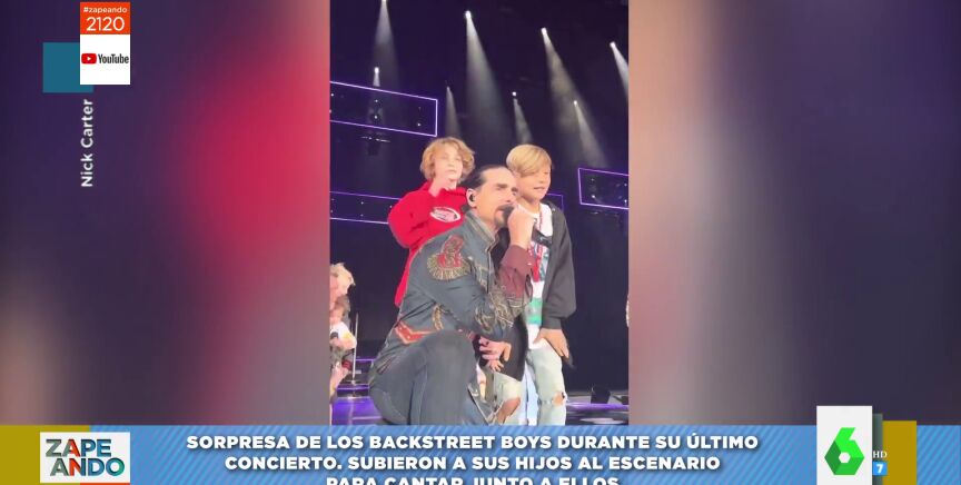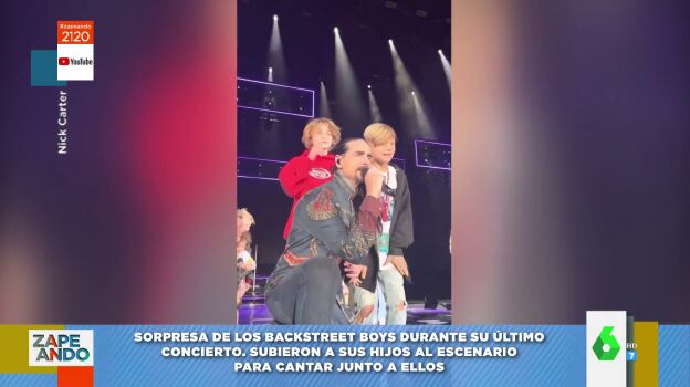 "Este vídeo os va a hacer sentir muy viejos", avisa Dani Mateo a sus compis de Zapeando antes de mostrarles lo que pasó en el último concierto de los Backstreet Boys, que se celebró en Los Ángeles. Y, es que, en mitad de este show con el que reanudaron su gira mundial, los miembros de la banda subieron a sus hijos al escenario para cantar con ellos uno de sus grandes éxitos, 'No place'.