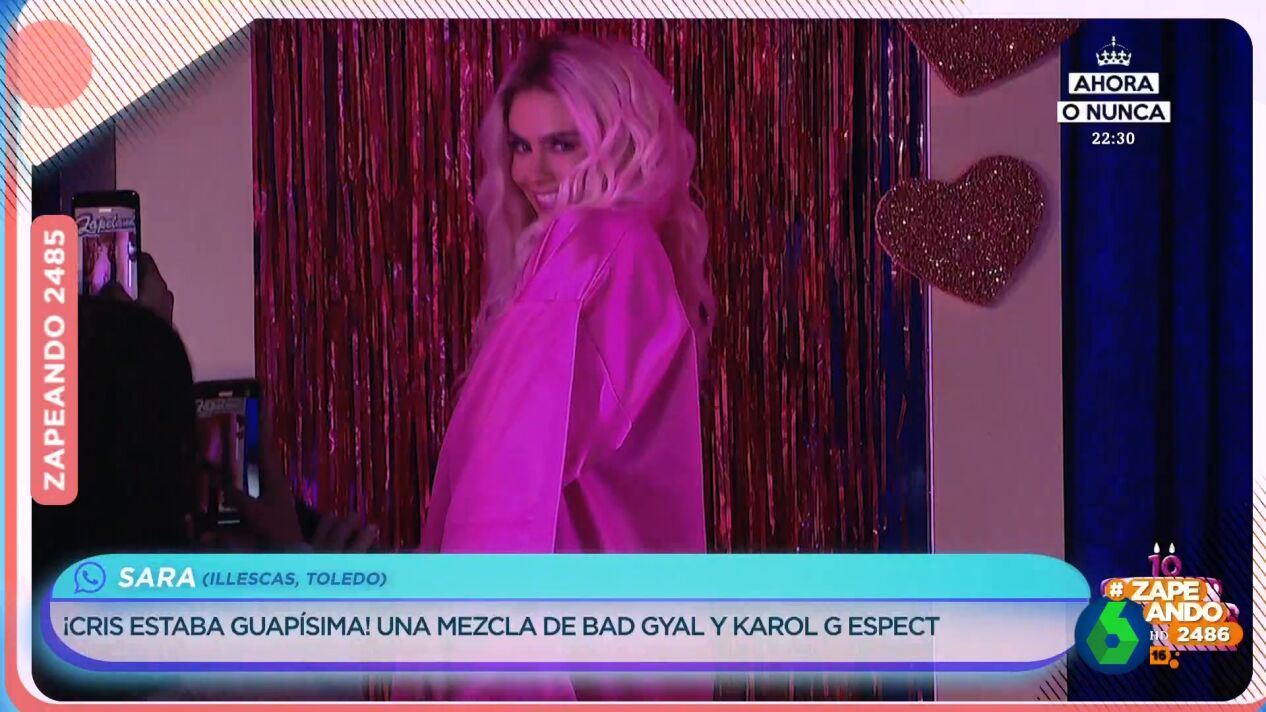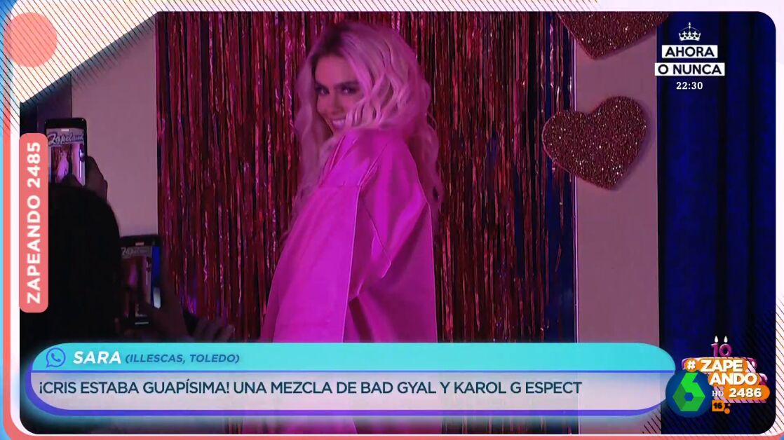 La primera que recibe las opiniones de la audiencia es Cristina Pedroche, que con su melena rubia y su outfit de 'brilli-brilli' conquistó a los espectadores. Como cuenta Santi, Pedroche fue considerada "una mezcla de Bad Gyal y Karol G".