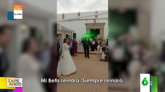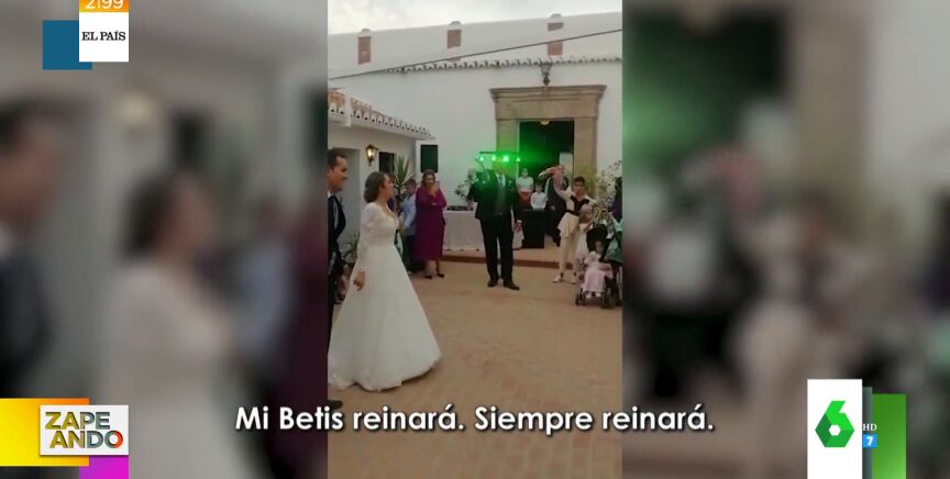 Una pareja se vuelve viral después de celebrar su boda con la temática del "Betis". Hasta han versionado la canción 'No puedo vivir sin ti' de Coque Malla para cantarla a pleno pulmón tras la ceremonia. Puedes ver el momentazo en este vídeo de Zapeando.
