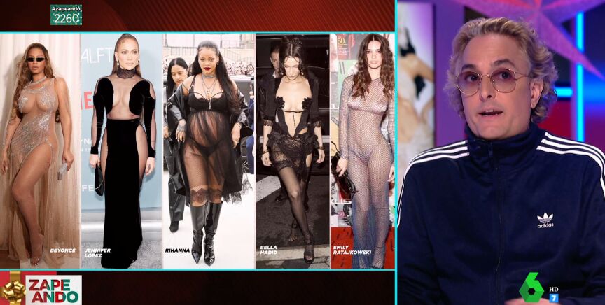 "La transparencia de Ratajkowski es increíble", opina, y asegura en Zapeando que "la transparencia de 2023 va a ir por ahí". Sin embargo, no tiene tan buenas palabras para Beyoncé, que opina que lo único actual que lleva son las "gafas", porque el resto es de hace doce años"; y con Jennifer Lopez está muy disgustado: "Ojalá vuelva a ser icono de moda".