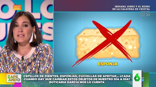 Isabel Forner pregunta a Boticaria García en el plató de Zapeando cada cuánto tiempo hay que cambiar la esponja de baño. "¡No uséis la esponja, es un nido de porquería!", destaca la experta, que afirma que el uso de la esponja no es necesario: "Podemos limpiar nuestra piel perfectamente sin esponja porque es un sitio donde se acumula mucha porquería".