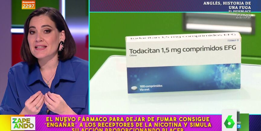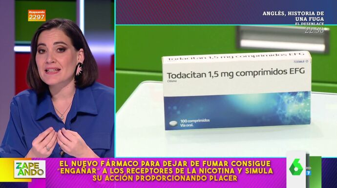 Boticaria García explica en este vídeo de Zapeando que hay estudios que confirman que el Todacitán, el nuevo tratamiento que financia Sanidad, ayuda a dejar de fumar.