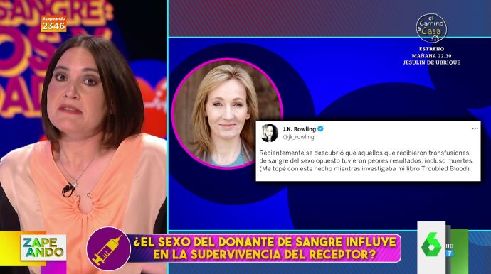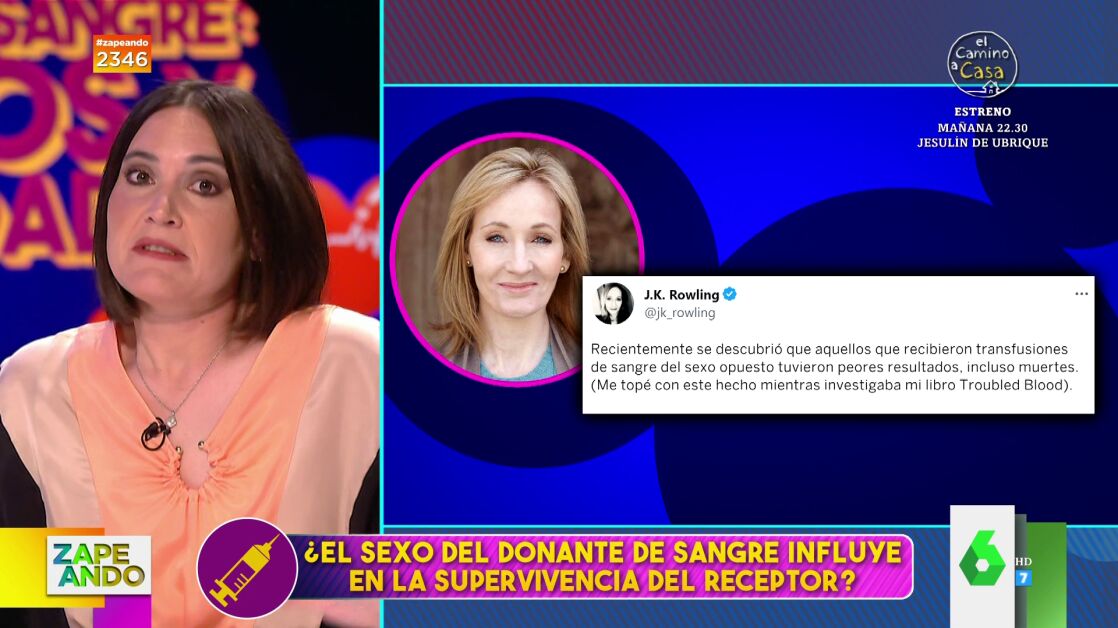 La experta en farmacia desmiente que el sexo del donante influya en la supervivencia del receptor de una transfusión de sangre tal y como ha afirmado la autora de Harry Potter, J.K. Rowling. "La prefiero cuando habla de magos", reconoce Dani Mateo.
