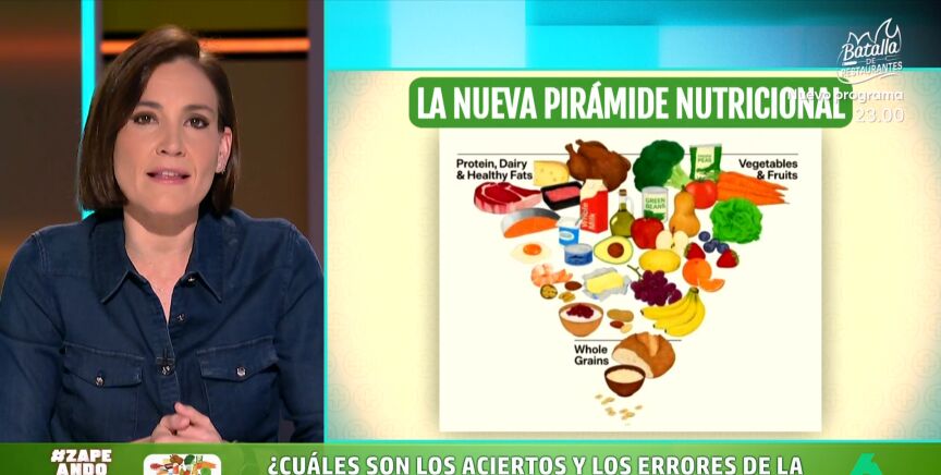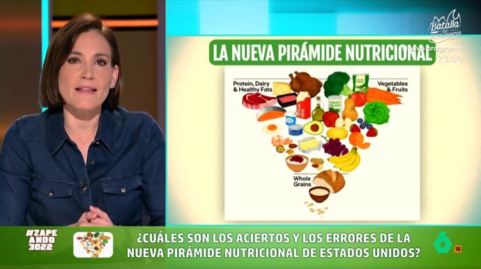 Boticaria García pone a prueba en Zapeando la nueva pirámide nutricional de Donald Trump, según la experta "una mezcla de un montón de aciertos", ya que "sorprendentemente se carga los ultraprocesados", junto a "una oda al chuletón".