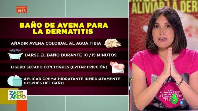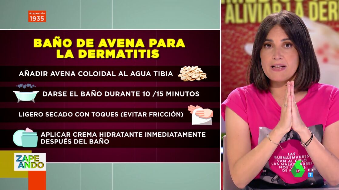 Los baños de lejía o de avena, los emplastos de alquitrán o la vaselina pura pueden ser buenos remedios, aunque suene raro, para aliviar los síntomas de la dermatitis. Así lo explica Boticaria García en Zapeando, aunque destaca que siempre debe hacerse con la supervisión de un dermatólogo.