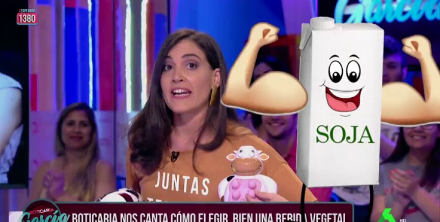 Boticaria García vuelve a cantar en Zapeando. La experta en Farmacia realiza su propia versión de una canción en la que manda un mensaje: "Las bebidas vegetales no vienen de animales, no se pueden llamar leche aunque al café las eches".