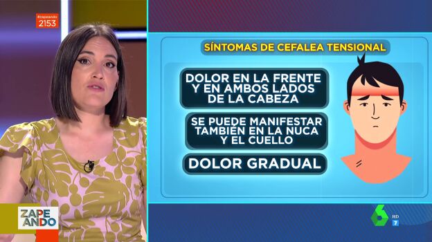 El dolor de cabeza es la dolencia más común y discapacitarte entre las personas de entre 15 y 50 años, y aunque hay muchos tipos de dolores de cabeza nueve de cada diez cefaleas no son síntomas de nada malo. Como explica Boticaria García en Zapeando, la más común es la cefalea tensional que se siente en la frente y puede extenderse a la nuca y el cuello.