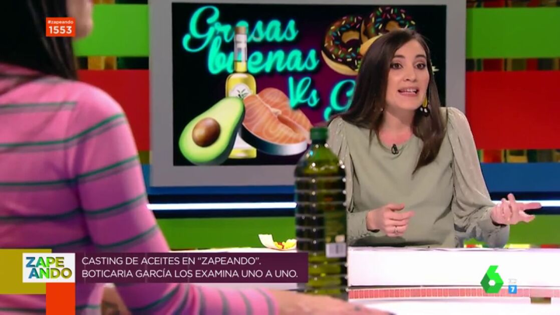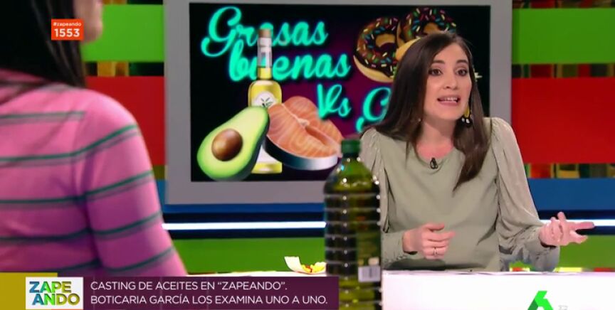Boticaria Garcia regresa a Zapeando para realizar un casting en el plató con los mejores aceites de oliva. "El aceite de oliva virgen es lo más, es la grasa más sana del mundo porque actúa como antioxidante, ayuda a reducir el colesterol malo y aumenta el bueno", destalla la joven.