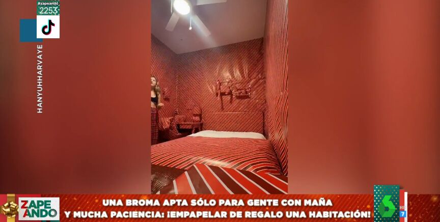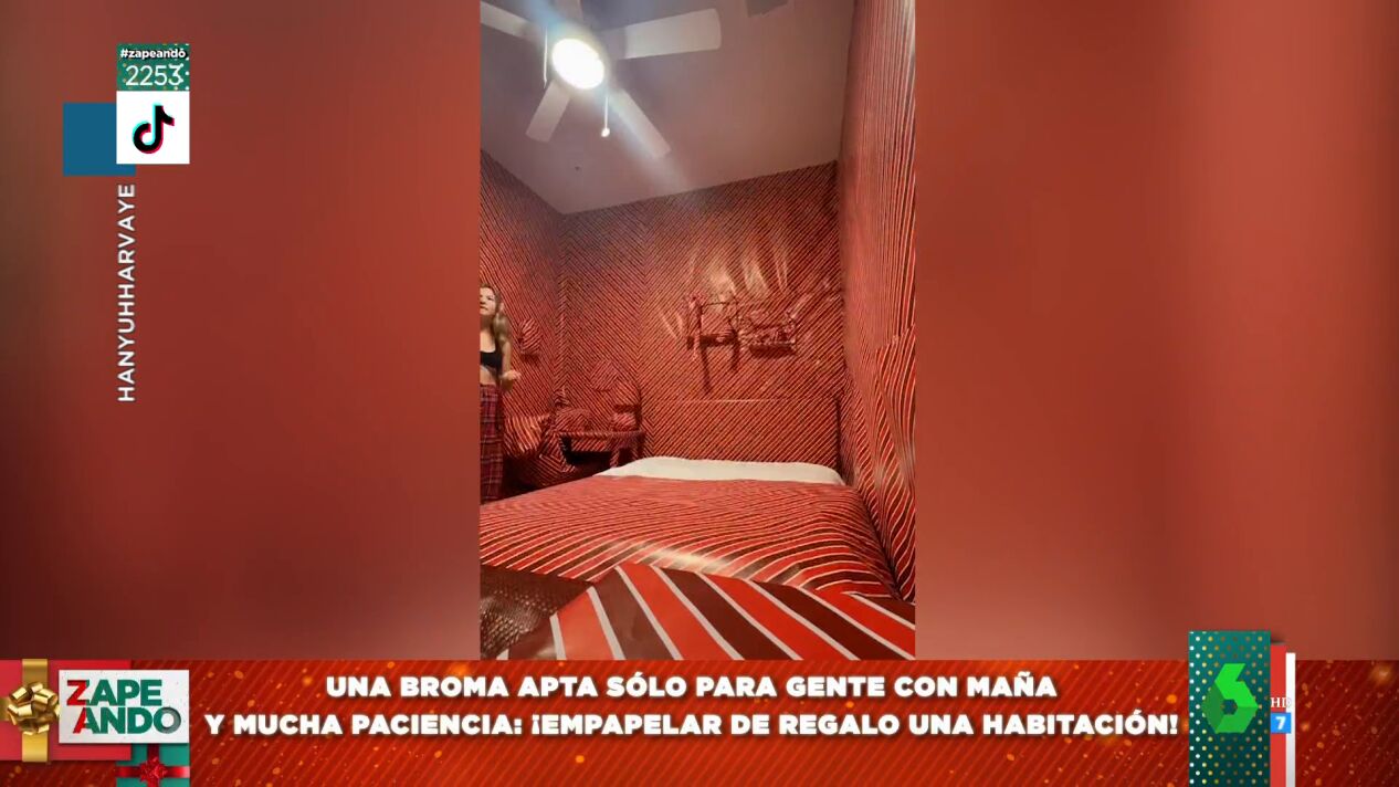 Cristina Pedroche muestra en este vídeo de Zapeando la broma viral de unas estudiantes a su compañera de piso: empapelar toda su habitación con papel de regalo.