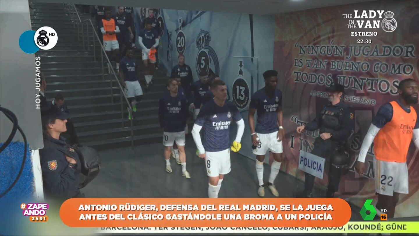 La broma viral de Rüdiger a un Policía Nacional durante el Real Madrid-Barça que termina con 'premio'