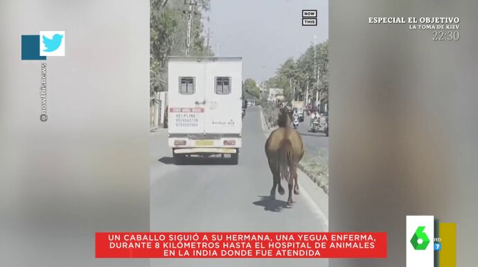 Se trata de un equino que ha corrido durante 8 kilómetros tras una ambulancia en la que trasladaban al veterinario a su hermana, una yegua enferma. El animal no cesó en su carrera hasta que el vehículo llegó al hospital.