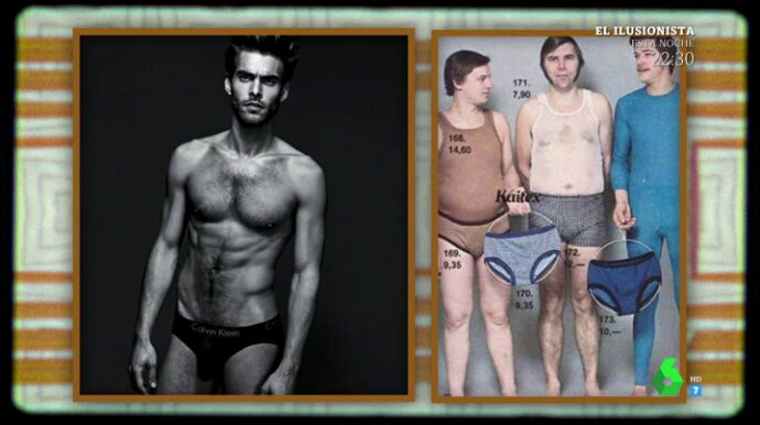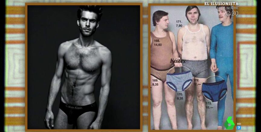 Y precisamente así lucían en los anuncios de ropa interior. Mientras que a día de hoy estarían protagonizados por Jon Kortajarena, en los 70 eran más "fofetes, blaquecinos, con tetillas y calzoncillos arrugados", como ha explicado Alcayde.