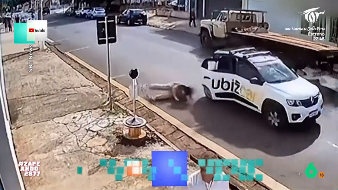 Como se puede ver en las imágenes, la joven abre la puerta y se lanza a la calle con el vehículo en marcha. La chica rueda por el asfalto y, finalmente, se levanta como si nada. "Ni Tom Cruise se atrevió a hacer eso en una película", afirma Isabel Forner.