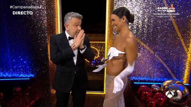 Si hay una cosa que no puede faltar en las Campanadas con Cristina Pedroche es uno de sus chistes malos. "Fíjate si estoy tan igual a la Cristina del 2022 que voy a arrancar el 2023 con un clásico", ha comentado la presentadora, tras lo que Chicote ha anunciado: "Españoles, ahora viene el chiste malo de Cristina Pedroche".