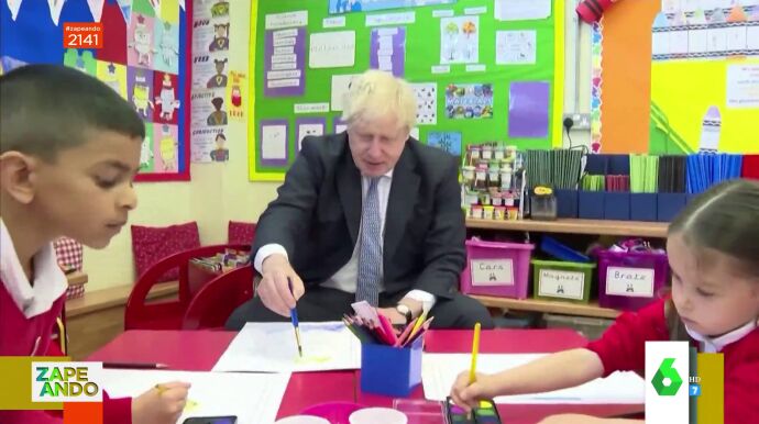 La mesa de Zapeando ha analizado las 'habilidades' más desconocidas de Johnson, al que se le ve pintar un retrato de la reina Isabel II, enfrentarse a la tecnología de un paraguas, estudiar la resistencia del cuerpo humano en un partido de rugby con un niño japonés o desafiando las leyes de la naturaleza en una tirolina. "Le echaremos mucho de menos, el Leonardo da Vinci del siglo XXI", comenta Mateo en el vídeo sobre estas líneas.