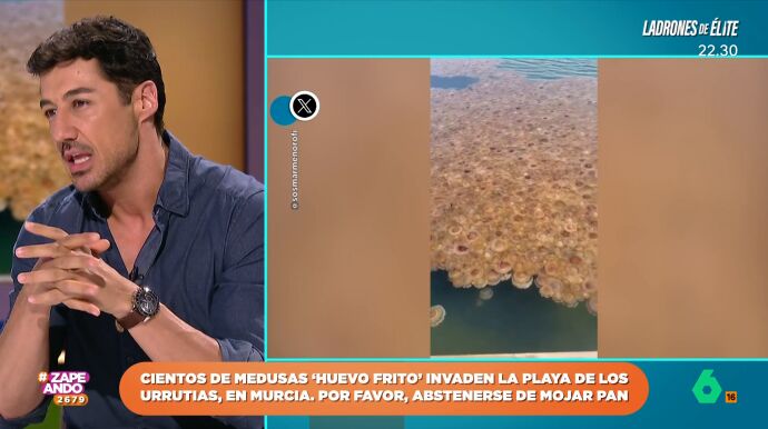 Cacho tranquiliza a los zapeadores al indica que no son peligrosas ya que pican pero no son urticantes. "Tiene un diámetro entre 15 y 20 centímetros y no les gusta nada el agua dulce. Justo allí la cuenca hidrográfica que más sequía tiene es la del Segura entonces cuanto menos agua evacúen los ríos en el mar más medusas habrá", indica.