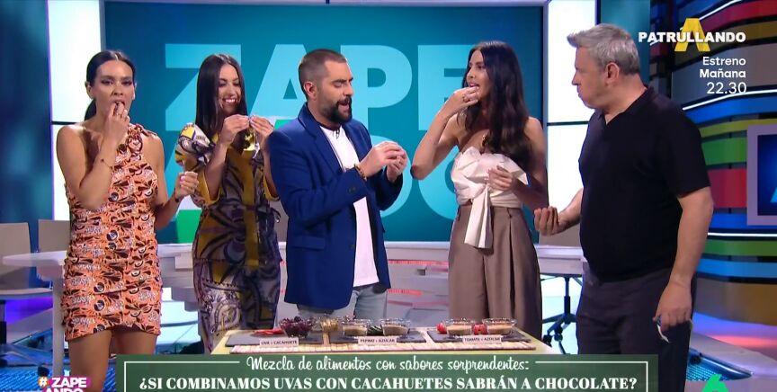 La tercera mezcla de alimentos que propone Bona es la del tomate con azúcar, que no termina de entusiasmar a ninguno de los zapeadores a pesar de que, en teoría, tendría que saber a fresa: "Esto sí que sabe a ojete", apunta Dani.