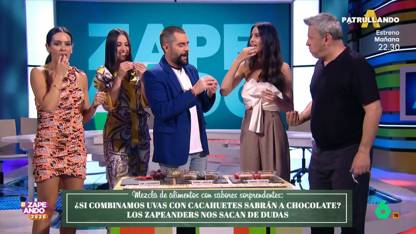 ¿Es cierto que mezclar uvas con cacahuete sabe a chocolate? La sorprendente 'cata' de Maya Pixelskaya en Zapeando