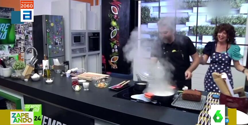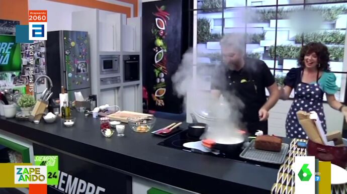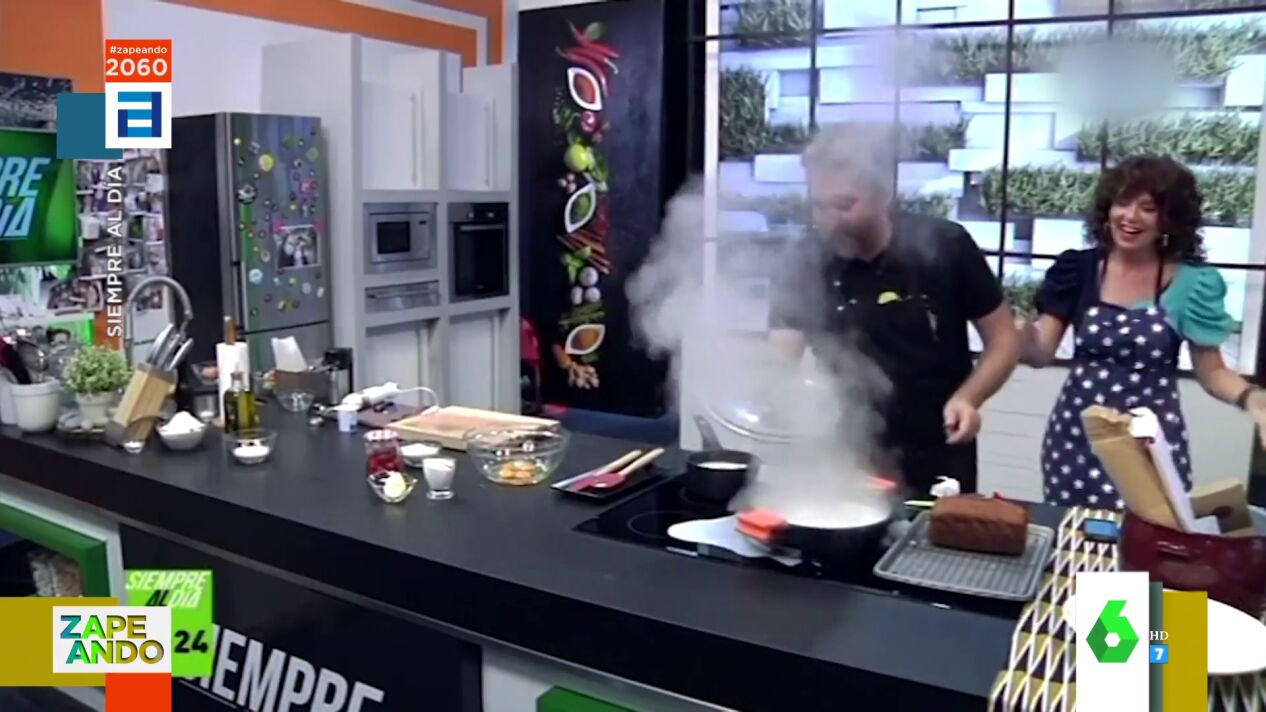 Ha pasado en el programa de Siempre al Día, de la televisión asturiana. El cocinero tenía que responder correctamente a la pregunta '¿Por dónde respiran los insectos?' Mientras cocinaba en pleno directo. Sin embargo, nada pasó como él esperaba y, como bien advierte Thais Villas: "El multitasking no es lo suyo".
