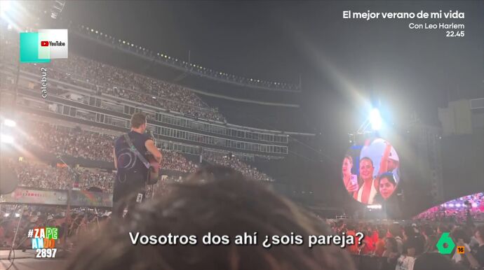En otro de sus conciertos, el cantante de Coldplay preguntaba a dos personas si eran pareja. Al ver que no respondían, incluso se intentó comunicar con ellos en español.