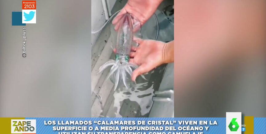 El calamar de cristal es una especie que vive en la superficie o a media profundidad del océano y que tiene la sorprendente capacidad de volverse totalmente invisible. En el vídeo, la cómica reacción de Dani Mateo al descubrirlo: "Es el rey del ghosting"