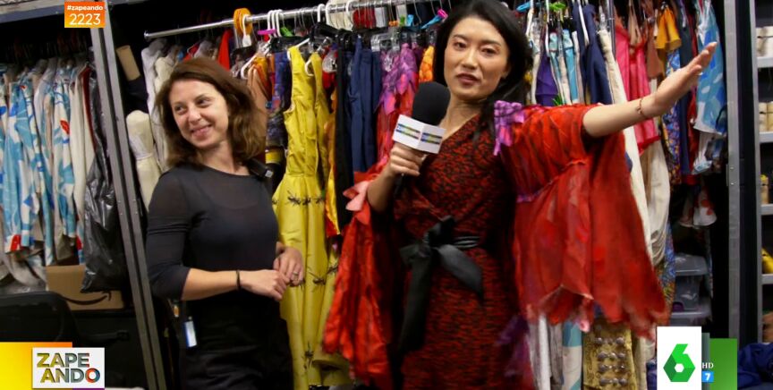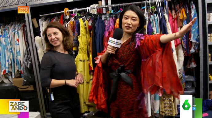 En el vídeo sobre estas líneas, la reportera de Zapeando descubre cuánto se tarda en montar el espectáculo en cada ciudad que visitan y cómo es el trabajo del equipo de vestuario, en el que una de sus miembros afirma que ha llegado a estar "un año y medio sin volver a casa ni ver a la familia". "¿Te das cuenta de que en inglés eres una persona casi normal?", le comenta Dani Mateo a Jiaping. Puedes comprobar si es así en el vídeo sobre estas líneas.