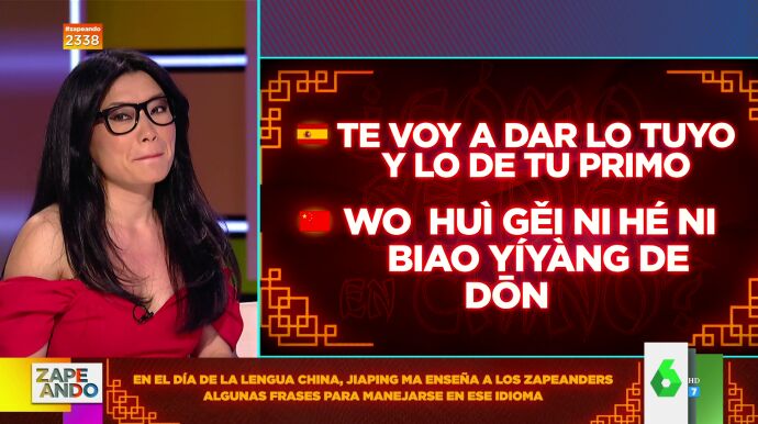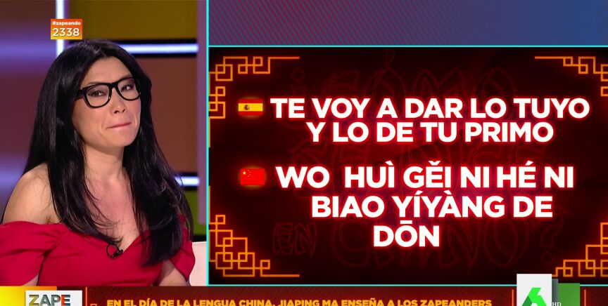Jiapingimparte un curso de chino a los zapeadores para celebrar el Día Internacional de esta lengua. Dani Mateo le pide que sea uno "de urgencia", con lo básico "por si vamos a China y tenemos que manejarnos o huir de la policía", bromea.