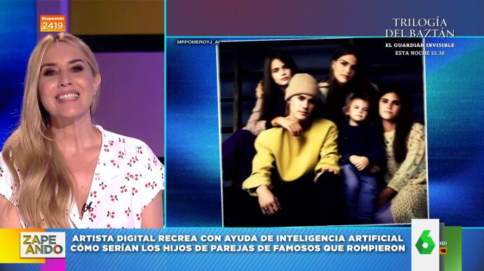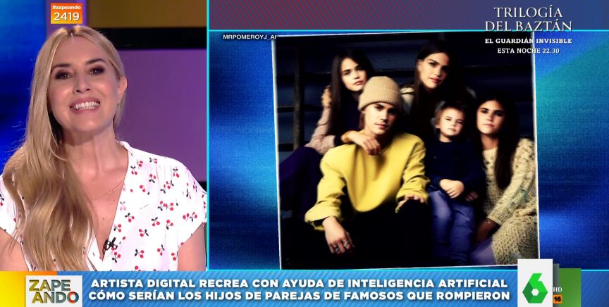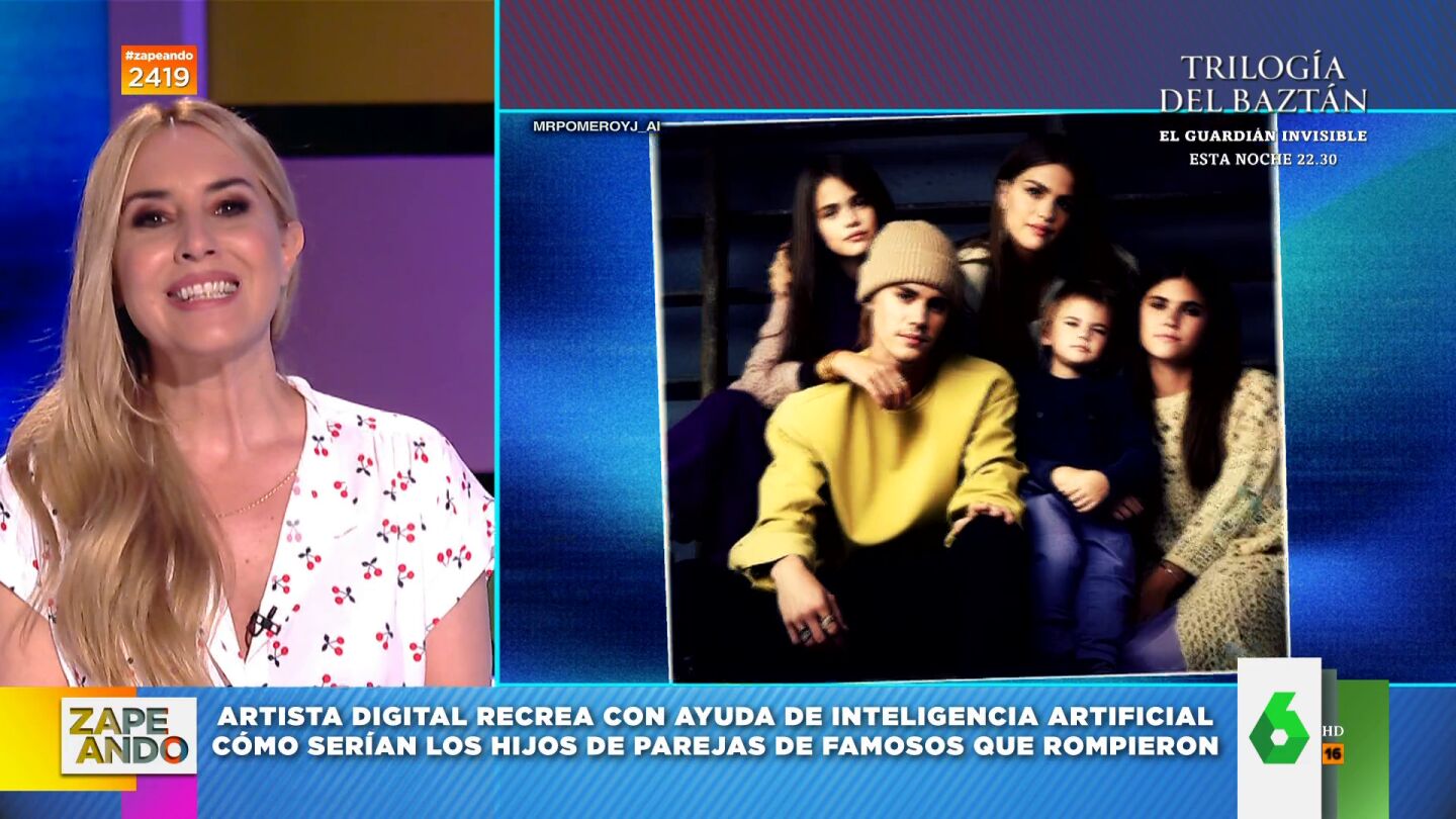 Puedes ver cómo serían los hijos de Brad Pitt y Jennifer Aniston y de Selena Gómez y Justin Bieber en el vídeo principal de la noticia, donde Berta Collado propone a los zapeadores adivinar a qué pareja de famosos que rompió hace tiempo pertenecen unos niños creados por la IA.
