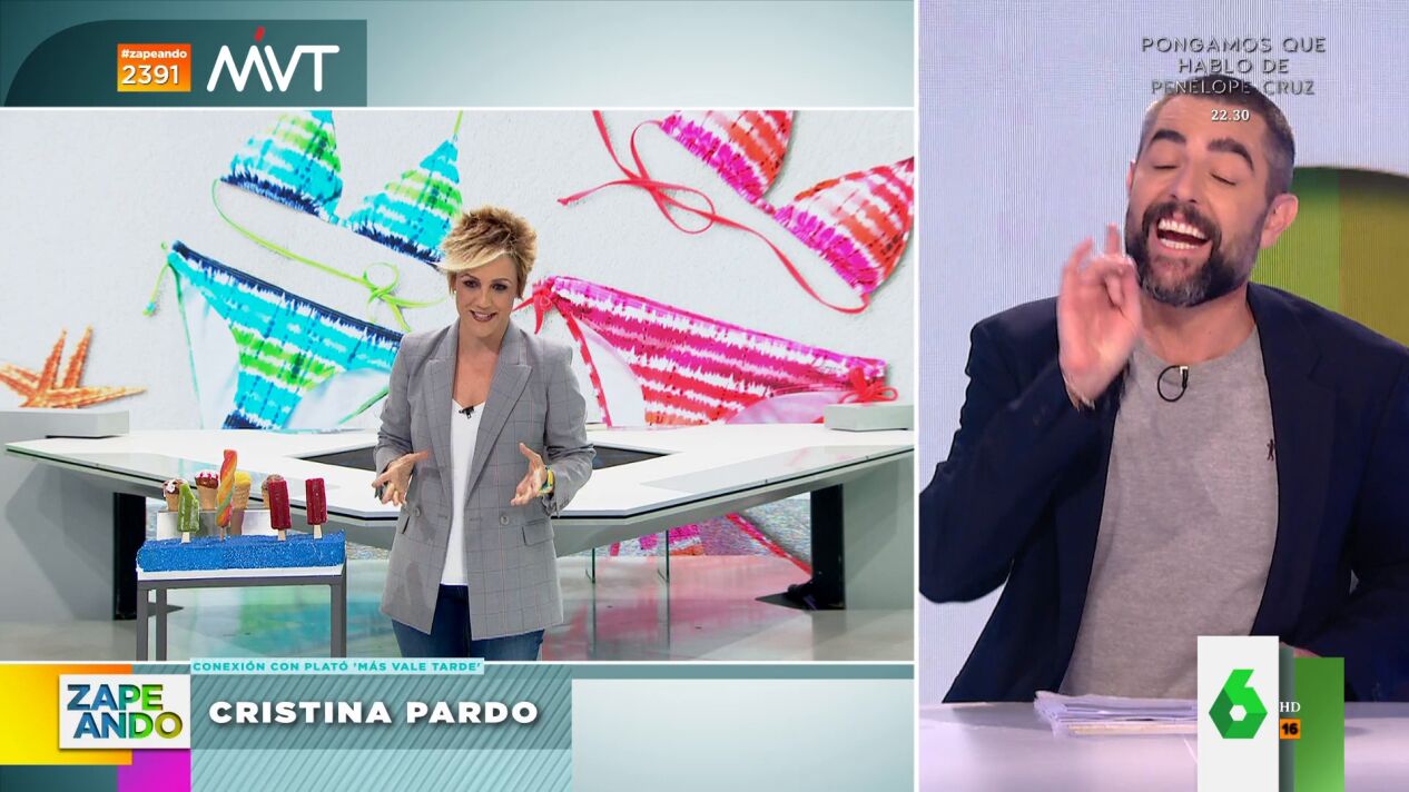 "Cualquier día pierdo la cabeza y en El Intermedio salgo en bikini", asegura Dani Mateo a Cristina Pardo, que está convencida de que ya lo ha hecho. Por eso, el presentador de Zapeando se ve en la obligación de hacerle esta cómica corrección.
