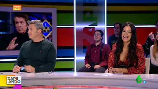 Es en ese momento cuando Cristina Pedroche sorprende a la mesa de Zapeando desvelando el gesto que le hace a su compañero cuando se despista: "He estado a punto de hacerle así, que es mi gesto para avisarle de que tiene que hacer algo fuera de lo normal". Descubre en el vídeo principal de la noticia cuál es su seña con la que se avisan cuando están despistados. Y tú, ¿te habías dado cuenta?